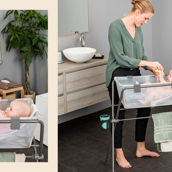 El soporte para Stokke® Flexi Bath® está diseñado para acercarle a usted y a su bebé para que se diviertan y estrechen lazos a la hora del baño. Fabricado exclusivamente para adaptarse a la bañera Stokke® Flexi Bath®, está diseñado para ofrecer seguridad, facilidad de almacenamiento y comodidad con todo a mano. El bloqueo de la bañera también significa que el soporte se mantiene plegado y erguido sin ayuda. Puede utilizarse para bañar a recién nacidos y hasta que puedan mantenerse de pie sin ayuda. Evite los dolores de espalda al arrodillarse en el suelo con este robusto y ergonómico ayudante para la hora del baño. Fabricado pensando en la funcionalidad, la comodidad y el vínculo afectivo.