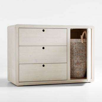 ¡Qué ordenado! Unas gruesas trenzas de jacinto de agua encalado se entrelazan intrincadamente alrededor de un marco de hierro en este cubo de suelo alto, listo para acorralar mantas o ropa sucia extra en todo su encanto de inspiración casera. Las robustas asas de algodón son suaves al tacto pero lo bastante fuertes para llevarla de una habitación a otra. Su perfil vertical le permite meterse fácilmente en armarios, esquinas o dentro del armario lateral de nuestra cómoda Montauk extra ancha. Diseñada en colaboración con Leanne Ford, esta colección de cubos es una exclusiva de Crate & Kids.