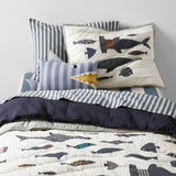 Decore el cuarto de los niños o la habitación infantil de su pequeño amante de los animales con nuestro juguetón cojín de rayas de tiburón. Fabricado en lona de algodón resistente pero suave, el cojín presenta detalles bordados en crewel para añadir textura. Con una expresión ferozmente divertida y aletas en 3D, el diseño único añadirá individualidad al espacio de cualquier zoólogo en ciernes.