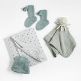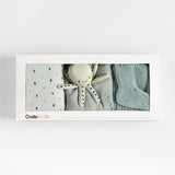 Que empiecen los oohs, ahhs y gahh-gahhs: Nuestro set de regalo pulpo para bebé está listo para deleitar al nuevo miembro de su vida. Este cuarteto demasiado mono de artículos esenciales para bebé de color gris azulado está confeccionado en algodón orgánico mimoso y transpirable. El pañal con puntos de diamante les envuelve en una suavidad suave pero segura, mientras que el pulpejo les ayuda a aprender a tranquilizarse solos. Para las mañanas frescas en casa (o en la playa, por supuesto), añada el gorro y los patucos de punto para mantener calientes la cabeza y los deditos de los pies.