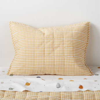 Hemos reinterpretado el icónico cuadro escocés para que los niños puedan cubrir su cama con un estampado sencillo pero divertido en un color relajante y habitable que se mezcla y combina con cualquiera de nuestras colecciones de ropa de cama infantil. Confeccionado en voile de algodón orgánico supersuave teñido en hilo y acabado con acolchado a mano, el cuadriculado a pequeña escala se convierte en amarillo liso para crear dos looks en uno. Combínelo con nuestro edredón de algodón amarillo de cuadros Windowpane para completar el look.