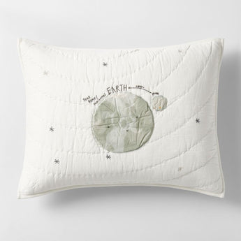 ¿Quieres que los niños se emocionen antes de dormir? Cubre su cama con ropa de cama divertida que representa lo que más les gusta. Nuestra funda de almohada "Outer Space" da vida al planeta Tierra con un divertido aplique y detalles bordados, desde una carita tierna hasta una curiosidad "escrita a mano". Y el suave algodón orgánico mantiene a los pequeños cómodos y abrigados. Combínala con nuestro juego de edredón y sábanas "Outer Space" de algodón orgánico a juego para un look espectacular.