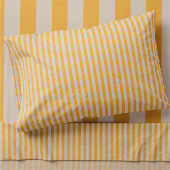 Dele a la habitación de su hijo un toque vacacional con las atrevidas rayas estilo cabaña de nuestro juego de sábanas Riviera. Las sábanas a rayas amarillo sabana en chambray de algodón orgánico ofrecen una textura sutil, un tacto irresistiblemente suave que sigue siendo ligero y transpirable. Las finas rayas de la funda de almohada y de la sábana bajera contrastan con las rayas más anchas de la sábana bajera para dar un aspecto juguetón. Combínelas con otras piezas de nuestra divertida colección de ropa de cama Riviera.