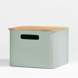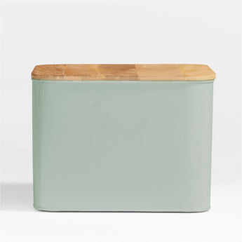 • Outline Sage Papelera metálica mediana de suelo con tapa de madera