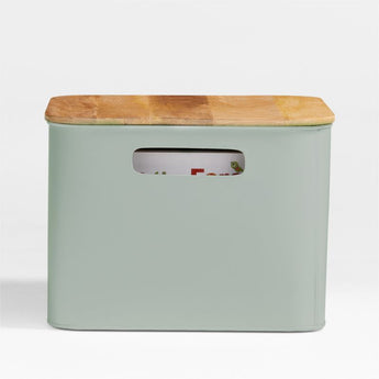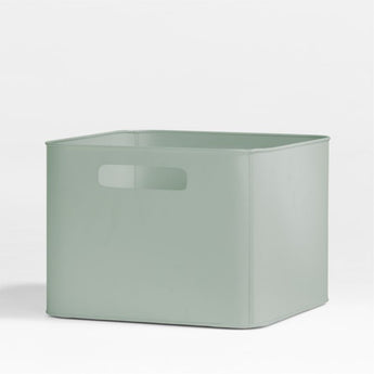 Contenga cualquier cosa y todo con nuestra sencilla y elegante papelera metálica Outline en un tono salvia terroso. Diseñado para ser versátil y construido para soportar años de uso, el cubo de metal es lo suficientemente profundo como para mantener los libros en posición vertical, los materiales de manualidades organizados o los elementos esenciales de estudio siempre donde los necesite. Las asas recortadas en cada extremo son fáciles de agarrar para las manos de los niños. Son mínimas, funcionales y totalmente prácticas: compre varias para apilarlas verticalmente, ahorrando un valioso espacio en el suelo.