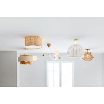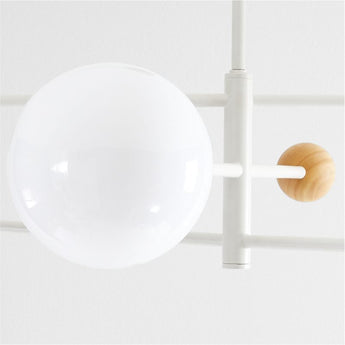 Con un llamativo diseño de materiales mixtos, un inesperado motivo esférico y unos brazos mínimos que se extienden en todas direcciones, nuestra lámpara de araña blanca Quinn es un guiño juguetón al diseño de mediados de siglo. La base cónica y los globos flotantes de madera natural contrastan a la perfección con la nítida estructura de acero blanco y las pantallas acrílicas. Este estilo versátil y elevado queda bien en cuartos infantiles de género neutro y habitaciones de niños grandesSu diseño de perfil bajo funciona especialmente bien en dormitorios con literas o camas en altillo. Además, es lo suficientemente refinada como para hacer la transición a espacios familiares compartidos en años venideros.