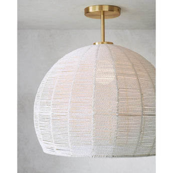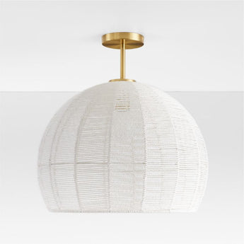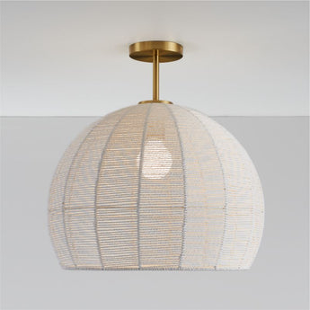 Moderna y espaciosa, nuestra lámpara de techo empotrada proyecta una luz suave y relajante. Suspendida de una lámpara corta, brass Con una varilla acabada, la lámpara colgante suspende una esfera abierta de cuerda tejida de papel marfil. Contemporánea y clásica a la vez, ilumina la habitación de un bebé o de un niño con un estilo sobrio.