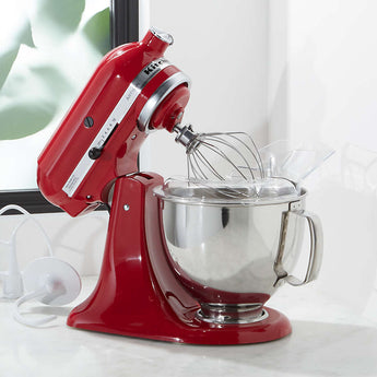 Ponga a tono la decoración de su cocina con la batidora de pie de la serie Artisan de KitchenAid en rojo reluciente. Desde mezclar masa para tartas y montar nata hasta amasar masa de pan y desmenuzar pollo, encontrará infinidad de usos para esta batidora de gran resistencia fabricada para durar. La batidora de pie con cabezal inclinable de la serie Artisan cuenta con un control de diez velocidades con ajustes desde batir muy despacio hasta batir a gran velocidad. Su bol inoxidable de cinco cuartos con asa ergonómica da cabida a grandes tandas de sus recetas favoritas, y el cabezal inclinable y el escudo vertedor de fácil instalación facilitan la adición de ingredientes. Añada accesorios (se venden por separado) para sacar el máximo partido a esta batidora de color rojo brillante.