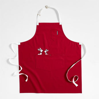 Vestidos y listos para las fiestas, los encantadores renos de Joan Anderson posan en nuestro invernal delantal. El caribú blanco como la nieve asoma por el bolsillo del delantal, bordado sobre algodón orgánico rojo cereza y abrigado con bufandas a rayas rojas y verdes. Los lazos en la cintura y el cuello ajustable proporcionan un ajuste cómodo. Ideal para los anfitriones navideños, el delantal infunde alegría invernal a sus proyectos de cocina y repostería durante todo el invierno. Combínelo con la manopla para horno y el agarrador de ollas a juego para tener una cocina coordinada.