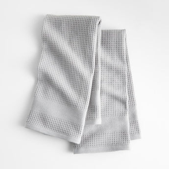 No hay necesidad de elegir, nuestras toallas de algodón orgánico profundamente afelpadas y absorbentes mezclan el rizo clásico y un suave tejido gofrado en gris claro. Los lados texturizados y gofrados secan la cristalería delicada sin dejar pelusa, mientras que los lados de rizo son ideales para secar ollas y sartenes. Parte de nuestra colección de textiles de cocina gris alloy , este juego de dos paños de cocina de rizo gofre es una exclusiva de Crate & Barrel.