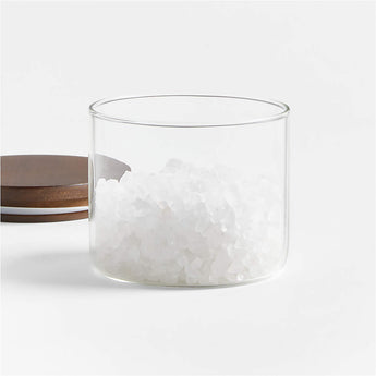 Crate & Barrel Bote Cristal con Tapa de Madera