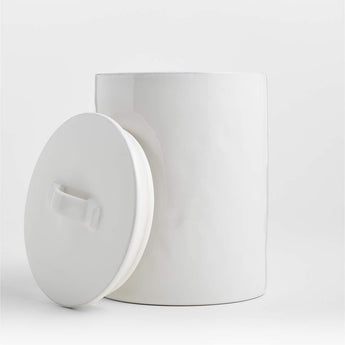 Fabricado para complementar nuestra codiciada colección Marin, este encantador bote exhibe las mismas líneas artesanales y orgánicas. El recipiente de gres vitrificado en blanco brillante almacena los ingredientes esenciales en la encimera o en una estantería abierta y se limpia fácilmente en el lavavajillas. Una junta de silicona proporciona un cierre hermético, mientras que el asa pellizcada remata el bote grande con un toque elegante. Para completar el look, combine el bote grande con los botes pequeño y mediano a juego y nuestra vajilla y piezas de servicio Marin a juego.