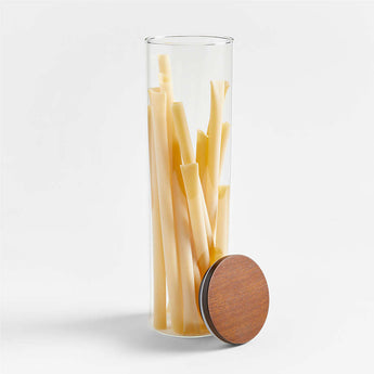 Una presentación moderna para los ingredientes esenciales, este bote Cristal extragrande sella la pasta, la harina o la avena con una tapa de acacia. El cilindro Cristal tiene un aspecto limpio y elegante, que contrasta con la calidez orgánica de la madera teñida de oscuro. El recipiente clear le permite vigilar su suministro de grapas, mientras que la junta de silicona mantiene fresco el contenido. Combínelo con los otros tamaños de botes de nuestra exclusiva colección para un almacenamiento apilable y digno de exposición.