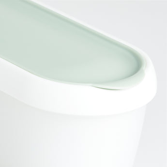 - Almacene con estilo: Esta tarrina blanca tiene capacidad para 2,5 cuartos de helado. Presenta un perfil delgado que encaja en las puertas de los congeladores, y los recipientes se apilan fácilmente en las estanterías.