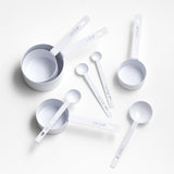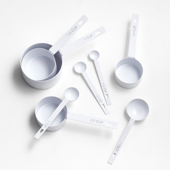 Mida los ingredientes con un estilo moderno gracias a este juego de cucharas medidoras minimalistas. Acabadas en blanco mate, las tazas de acero inoxidable llevan las medidas¼ cucharadita, ½ cucharadita, 1 cucharadita y 1 cucharada en gris en los mangos. Combínalas con el juego de tazas medidoras a juego o ata las cucharas con una cinta para hacer un dulce regalo para tu panadero favorito.