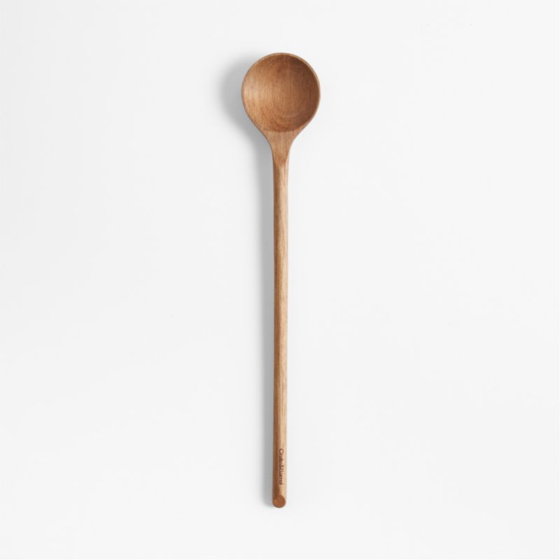Pruebe sopas, salsas y estofados con nuestra característica cuchara de degustación de madera de acacia. Fabricada con una cabeza suavemente redondeada, la cuchara tiene el tamaño perfecto para degustar y probar mientras cocina. La acacia sostenible da forma a un moderno utensilio orgánico con un aspecto cálido y clásico y un mango cilíndrico para un agarre resistente. Nos encanta la forma en que el refinado borde biselado remata el mango con un detalle dinámico. Combine la cuchara de degustación con los demás utensilios de exquisitas proporciones de nuestra exclusiva colección Crate & Barrel para conseguir un espacio de trabajo bien equipado a la altura de cualquier reto culinario.