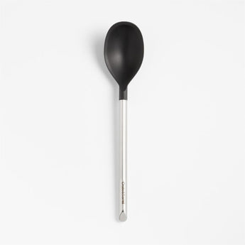 Remueva, vierta y sirva con nuestra característica cuchara honda de silicona y acero inoxidable. Fabricada con un núcleo de nylon para mayor resistencia, la cuchara de doble capacidad tiene el tamaño adecuado para remover y servir. La silicona suave al tacto no daña los utensilios de cocina antiadherentes y resiste las manchas, los arañazos y el calor hasta 600 grados. El acero inoxidable pulido da forma a un elegante mango cilíndrico para un agarre resistente y un aspecto profesional, y un refinado borde biselado remata el mango con un detalle dinámico. Combine la cuchara honda apta para el lavavajillas con los demás utensilios de exquisitas proporciones de nuestra exclusiva colección Crate & Barrel para conseguir un espacio de trabajo bien equipado a la altura de cualquier reto culinario.