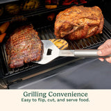 - ESPÁTULA Y PINZAS DE PRIMERA CALIDAD: Las herramientas de acero inoxidable para asar a la parrilla están hechas para rendir al máximo: la espátula tiene el borde dentado y abrebotellas; las pinzas se cierran para guardarlas y agarran los alimentos con facilidad. ¡Experimente los accesorios ideales para asar a la parrilla!