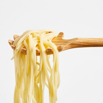 El inconfundible veteado de la madera de olivo da forma a una impresionante y resistente cuchara para pasta. Ideal para remover y separar los fideos para que no se peguen mientras se cocinan, la cuchara duradera también saca al dente linguine y fettuccine de ollas de agua burbujeante. Como parte de nuestra exclusiva colección de utensilios de madera de olivo Moreno, cada pieza se distingue por su veteado único y su cálido color orgánico. Reúnalos todos en uno de nuestros portautensilios.