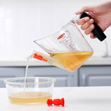 Simplemente vierta la salsa en el separador resistente al calor y observe cómo la grasa sube a la superficie. El colador atrapa los restos y el tapón evita que la grasa se derrame por el pico vertedor. Un protector evita que la salsa se derrame por el separador al verterla. Cuenta con prácticas marcas de medición y un mango antideslizante.