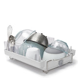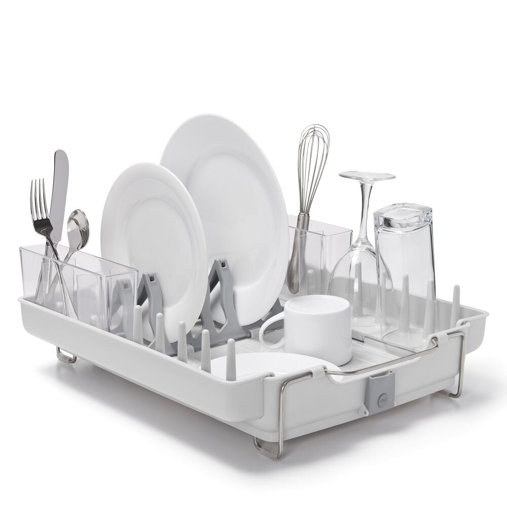 Ya sea para secar platos, vasos, cuencos o utensilios de cocina, ¡nuestro escurreplatos plegable puede con todo! El escurreplatos se puede plegar para objetos más grandes, mientras que el escurrevasos sujeta los vasos en su interior para evitar que goteen sobre la encimera. Además, el escurreplatos tiene un pico para escurrir fácilmente