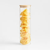 Una presentación moderna para un ingrediente esencial, este bote de Cristal sella la pasta, la harina o la avena con una tapa de bambú. El cilindro Cristal tiene un aspecto limpio y elegante, que contrasta con la calidez orgánica del bambú dorado. El recipiente clear le permite vigilar su suministro de alimentos básicos, mientras que la junta de silicona mantiene fresco el contenido. Combine el bote redondo extragrande de bambú y Cristal con sus homólogos pequeño, mediano y grande para un almacenamiento apilable y digno de exposición.