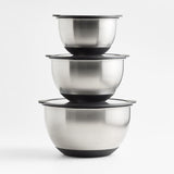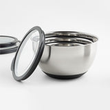 Cuencos mezcladores de acero inoxidable con tapa y agarre de silicona, juego de 3
