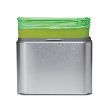 Este moderno contenedor de compost retiene sus residuos orgánicos con un estilo elegante. Fabricado en acero inoxidable con un revestimiento antimicrobiano a prueba de huellas dactilares, el compostador retiene sus restos mientras que la tapa de cierre suave los deja respirar para reducir los olores. El cubo interior verde se extrae y limpia fácilmente, mientras que el paquete de 30 bolsas compostables hace que sacar la basura (orgánica) sea coser y cantar. Guarde el cubo en su encimera, o utilice el acoplamiento magnético incluido para fijarlo al lateral de su cubo de basura simplehuman (se vende por separado