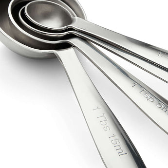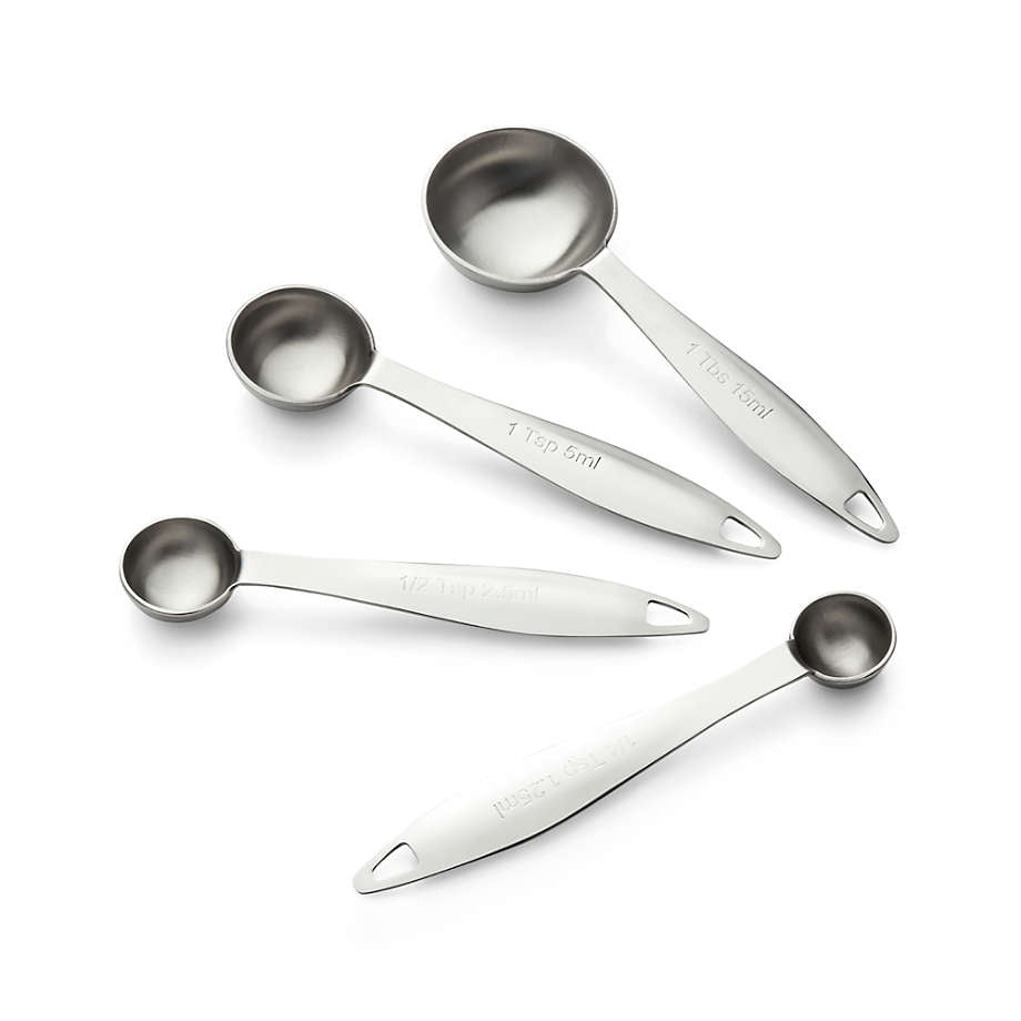 Aporte el cálido e intemporal brillo del cobre a las tareas culinarias diarias con nuestras cucharas medidoras de acero inoxidable bañadas en cobre. Este juego de cuatro mide volúmenes de ¼, ½ y 1 cucharadita y 1 cucharada sopera. Para cocinar y hornear de forma coordinada, combínalas con nuestras tazas medidoras en cobre rosado, clásico pero a la moda.