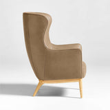 Alva adelgaza y alarga la clásica silla con respaldo de ala para conseguir una silueta contemporánea y un aire escandinavo. La inclinación ligeramente erguida y las curvas envolventes del respaldo hacen de la silla un lugar acogedor para acurrucarse con un libro o una copa después de cenar. La piel de grano superior en camel tiene el aspecto rústico de las sillas de montar desgastadas por el tiempo, amoldándose a cada curva del ajustado respaldo y el cojín del asiento. Las patas y la barra del asiento de madera de fresno se complementan con un acabado rubio que resalta las vetas. Escondida en un rincón o colocada alrededor de una mesa auxiliar, le encantará el estilo elevado y la comodidad de nuestra silla de acento de piel Alva.