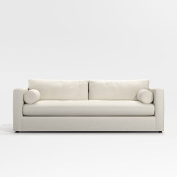 Destinado a ser el lugar favorito de todos para relajarse, Aris hace que el diseño moderno sea suave y acogedor. Los pulcros brazos de riel y la amplia cubierta establecen las limpias líneas del sofá, mientras que el profundo asiento corrido y los cojines del respaldo invitan a la pandilla a ponerse cómoda. Un par de almohadones ayudan a conseguir el acurrucamiento justo. El sofá de asiento profundo Aris es una exclusiva de Crate & Barrel.