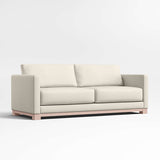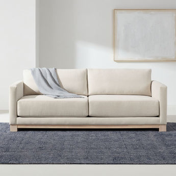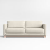 Todo el mundo está invitado a Gather. Logrando el equilibrio perfecto entre comodidad y estilo moderno, Gather Petite es de líneas limpias, actual y de escala adecuada para espacios pequeños. Anclado en una base de madera natural, el sofá de 88 pulgadas le da la bienvenida con unos cojines de asiento cuadriculados y extraplanos diseñados con una estructura de espiral interior para un máximo confort y durabilidad. Las costuras superiores mantienen el aspecto pulcro, no recargado. El sofá con base de madera Gather Petite es una exclusiva de Crate & Barrel.