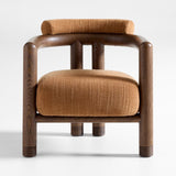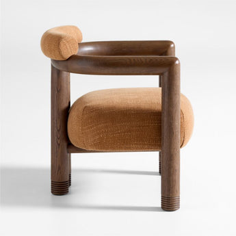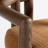 Porto traduce el diseño europeo que marca tendencia en una silla de acento a pequeña escala y de gran impacto. Las patas tubulares de roble macizo desembocan en un respaldo de espoleta aerodinámico, cada pata terminada en los pies con nervaduras fresadas. Un cojín acolchado recorre el respaldo curvado de la silla, proporcionando un agradable apoyo lumbar, mientras que el asiento acolchado juega con las proporciones a la vez que ofrece comodidad para acomodarse. La tapicería de color terracota tiene la suavidad al tacto de la chenilla y un tejido mullido con variaciones que dan a la tela una textura añadida y un aspecto único.