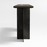 Preto cautiva con líneas fuertes y una fresca mezcla de materiales. Planos ingletados de acero ennegrecido acentúan la verticalidad, intersectándose para formar las patas en forma de X de la consola. Una encimera rectangular de fresno complementa la estética moderna e industrial con un acabado ebonizado, mientras que los bordes almohadillados contrarrestan con suaves curvas. Aumente el impacto de Preto añadiendo la mesa de centro o auxiliar a juego (se vende por separado).