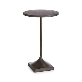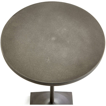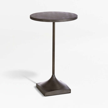 Llamada así por la palabra alemana que significa "salud", esta divertida mesa se pone a la altura de las circunstancias con una forma y un tamaño encantadores. Con un intrigante acabado antiguo, la mesa eleva su tablero redondo de aluminio sobre una esbelta columna de hierro anclada en una escultural base de aluminio fundido. Combínela con un sillón o cree un grupo con las mesas Prost mediana y alta coordinadas, cada una con su propia mezcla única de materiales. La mesa pequeña de metal para bebidas Prost es una exclusiva Crate and Barrel .