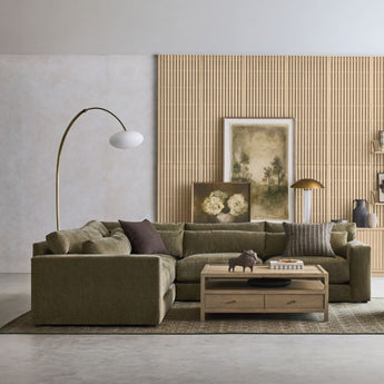 Tras años de trabajo, hemos incorporado los elementos de diseño favoritos de nuestros clientes para crear Retreat Seccionales, un nuevo y lujoso lugar de descanso con un aspecto limpio y moderno. La combinación de chaise longue con brazo derecho y sofá con brazo izquierdo tiene cojines de asiento suaves pero de apoyo y almohadas lumbares que se quitan para una sentada más profunda y loungey. Los brazos extra anchos proporcionan un lugar para aparcar un libro, una tableta o un bol de palomitas, y los cojines del respaldo en forma de T se acurrucan muy bien para mantener el aspecto limpio y actual. Texturizado y tolerante, el tejido de tapicería que nos encanta es Serenea, un tejido esculpido apto para toda la familia que se lee atemporal y contemporáneo.