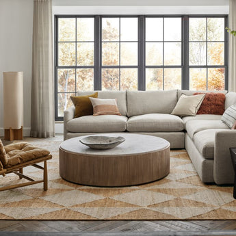 Hay más de lo que parece en el diseño circular aparentemente sencillo de Troupe. Una junta continua en forma de pico de pájaro traza el perímetro de la mesa de centro, aportando dimensión a sus contornos en forma de tambor. Compuesta por tablones de chapa de pino aserrada en cuartos, la mesa redonda muestra un veteado dinámico que se realza con el cepillado de alambre y el acabado vitrificado. Un tablero de mármol blanco Banswara apomazado combina de forma natural con el color claro y cálido de la madera, y una base de zócalo empotrada permite que nuestra exclusiva mesa de centro flote en una habitación.