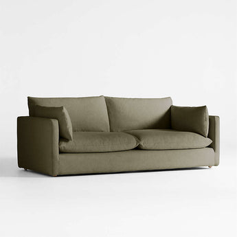 Es hora de relajarse con nuestro sofá tapizado de estilo costero. Bautizado con el nombre de nuestra actividad favorita, esta belleza moderna ofrece proporciones relajantes y suntuosos cojines hundibles. El amplio sofá cuenta con brazos delgados y una cubierta baja que deja espacio para cojines acolchados de respaldo y asiento para una sentada excepcionalmente profunda y cómoda. Nos encanta el tacto natural y la textura esponjosa de las fundas, confeccionadas con una ligera mezcla de hilos de algodón, lino y viscosa.