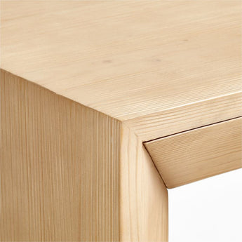 Como si de un marco de fotos se tratara, nuestra mesa auxiliar Vernon utiliza esquinas ingleteadas y ángulos para resaltar la belleza de la madera natural. Fabricada en pino de origen sostenible con un acabado ligeramente blanqueado, la mesa auxiliar geométrica utiliza un borde biselado inverso para crear el marco cuadrado abierto. Un único cajón está hábilmente ingleteado en the frame para mantener el aspecto sin costuras. Un ligero cepillado de alambre confiere textura a la madera al tiempo que resalta el veteado catedral y aserrado en cuarto de la madera. La mesa auxiliar Vernon es una exclusiva de Crate & Barrel.