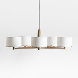 Lámpara de araña Isla BrassIrradiando alrededor de un cubo estriado acabado en bruñido brass, cinco brazos angulares soportan pantallas de lino blanco nítido en nuestra lámpara colgante Isla. La lámpara de araña infunde a un espacio belleza industrial, gracia arquitectónica y luz suavemente difusa. Combínela con la mesa triangular Isla y las lámparas de pie a juego para conseguir una estancia bien iluminada y unificada.