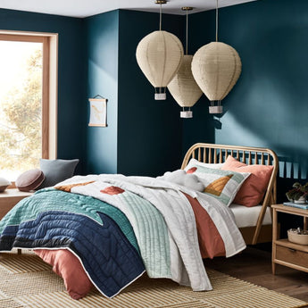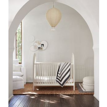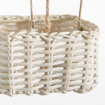 ¡Arriba, arriba y lejos! Con un extraño parecido a un globo aerostático, nuestra fantasiosa lámpara colgante es un espectáculo para la vista. Suspendida sobre una adorable góndola de ratán, una luz incandescente brilla suavemente a través de la pantalla de lino natural. Alegre un rincón poco iluminado de un cuarto infantil, ilumine la litera superior de una litera o añada el toque final al espacio de juegos de su viajero en prácticas. El cielo es el límite con esta pequeña y encantadora luminaria.