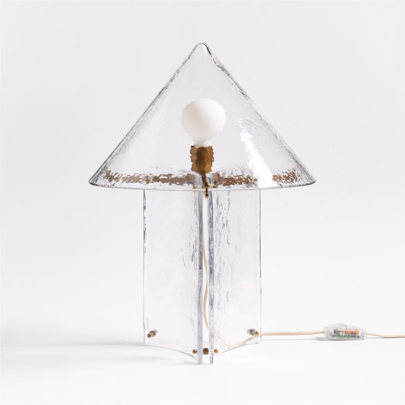Inspirada en las formaciones de hielo en capas, nuestra lámpara de sobremesa Vespera captura la belleza etérea del agua congelada. Fabricada íntegramente en Cristal fundido clear y sutilmente texturizado, la lámpara presenta una base de panel curvado y una pantalla cónica. Los detalles brass bruñido calientan la luz helada, brillando a través del Cristal sutilmente texturizado. Nos encanta la exquisita presencia de esta lámpara, especialmente combinada con la lámpara empotrada Vespera a juego.