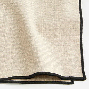 El bordado negro enmarca nuestra cálida servilleta natural para un aspecto nítido que eleva cualquier mesa, por informal que sea. Maravillosamente confeccionada con un contorno de densas puntadas merrow, la servilleta de algodón orgánico se despliega en un generoso cuadrado de 20 pulgadas. Combine la servilleta de tela con el camino de mesa y los manteles individuales Mercer con puntadas de merrow a juego
