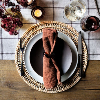 Parte de nuestra superventas colección de mesa Marin, este camino de mesa a cuadros está confeccionado en lino europeo de calidad excepcionalmente suave y flexible. El camino de mesa está sutilmente estampado con un motivo de ventana de finas rayas marrones sobre un fondo natural y confeccionado con costuras diagonales para lograr esquinas nítidas.