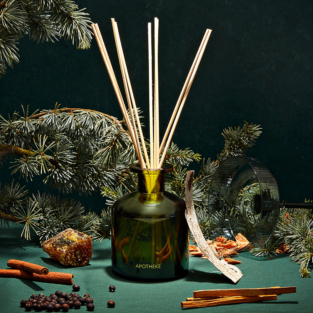 Lleve a casa una sensación de esplendor y nostalgia estas fiestas con el fresco y festivo aroma del Birch enebro. Este elegante difusor de carrizo mezcla aceites esenciales y de fragancia perfumada para una experiencia olfativa continua, duradera y excepcional.