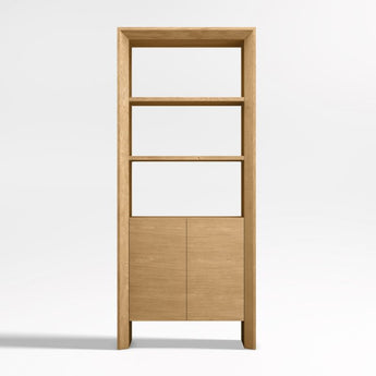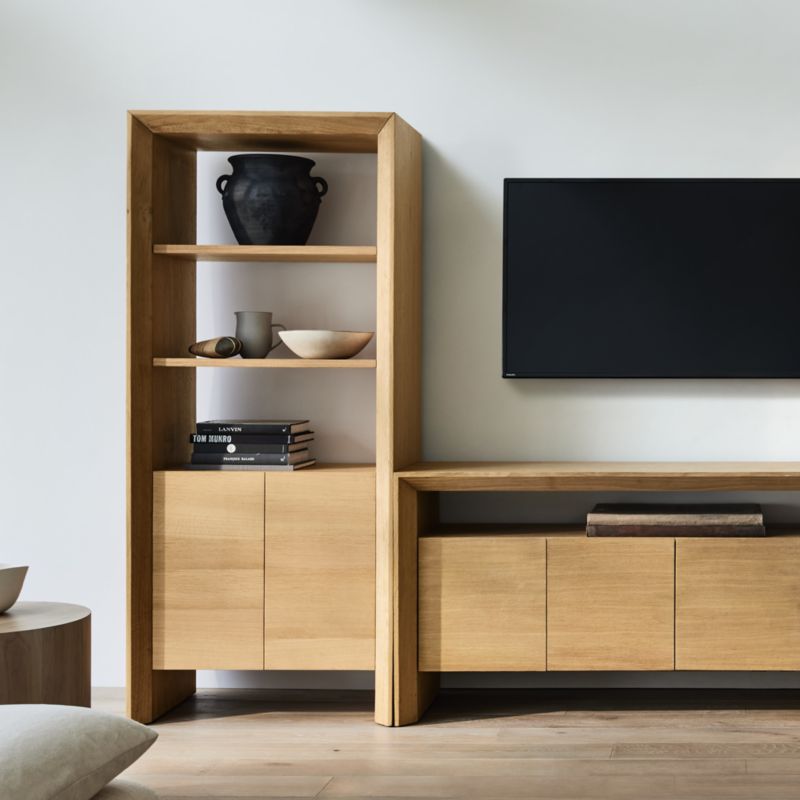 Nuestra estantería, que lleva el nombre de la belleza natural de la península de Baja California, celebra la riqueza orgánica del roble macizo. Su geometría sencilla y su tinte natural resaltan las vetas, los nudos y las marcas únicas de la madera. Los bordes biselados inversos y los estantes abiertos aligeran la silueta limpia en cascada, haciendo flotar un armario de frente plano para el almacenamiento cerrado. Rústica y atemporal, la estantería de roble natural Baja es una exclusiva de Crate & Barrel.