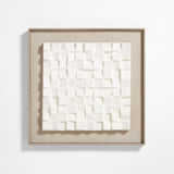 El papel maché se vuelve moderno y minimalista en esta pieza de arte texturizada. Los cubos desordenados se apilan en una composición dimensional y escultural, unidos por un acabado blanco tiza. Respaldado con lino de color arena en un marco de madera de mango a juego procedente de árboles que ya no producen frutos, "Blanco" aporta una textura sutil y un matiz monocromático a una entrada, un salón o una pared de galería.