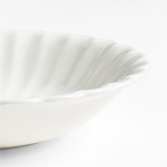 Suavemente translúcida y clásicamente blanca, nuestra porcelana china Capella aporta una elegancia atemporal a la mesa. Los detalles festoneados acentúan con gracia los suaves contornos del cuenco, mientras que el alto contenido en calcio de la cerámica le confiere su color blanco cremoso y su sutil luminosidad. A pesar de su delicada forma, el cuenco presume de una durabilidad y una resistencia de bordes excepcionales.