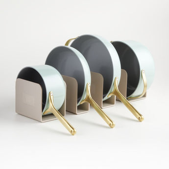Cocine con confianza con esta batería de cocina de siete piezas de Caraway Home, en nuestro exclusivo tono verde limo cremoso. Aptas para todas las placas de cocina, incluida la de inducción, y aptas para el horno hasta 550 grados Fahrenheit, las sartenes de aluminio cuentan con un acabado antiadherente cerámico para una cocción saludable y una fácil liberación de los alimentos. Los mangos de acero inoxidable acabados en oro cepillado añaden un toque de glamour a la hora de cocinar y servir.
