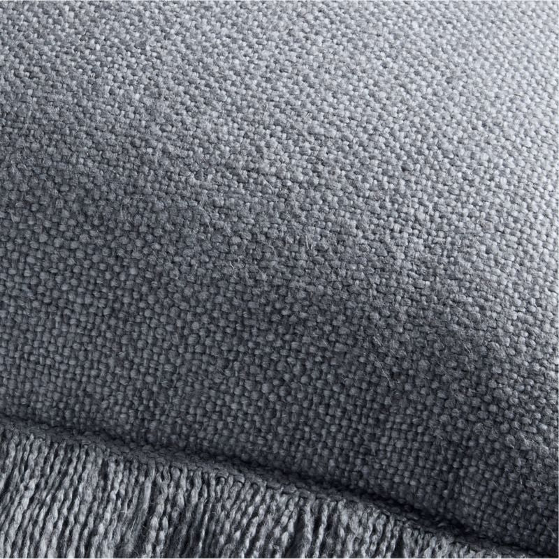 Un tejido irresistiblemente suave y esponjoso confiere a este cojín un aspecto y un tacto relajados con los que querrá acurrucarse todos los días. La inclusión de viscosa sedosa añade un brillo sofisticado a la belleza orgánica de las fibras de lino de origen sostenible. Teñida en azul ahumado, la almohada con flecos tiene un aspecto chic y desenfadado colocada sobre un sofá, un sillón o una cama, especialmente combinada con la manta a juego. Nuestra exclusiva almohada incluye un relleno de plumas o de plumón.